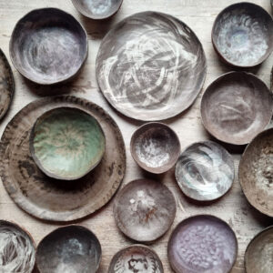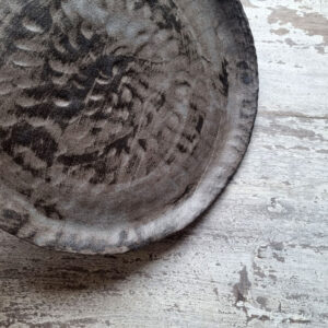 Ten ręcznie formowany talerz może służyć do podawania potraw lub jako dekoracja stołu. Dobrze sprawdzi się jako talerz do serwowania przekąsek takich jak sery, warzywa, owoce. Talerz należy do serii naczyń o nazwie Rusty. Japońska filozofia wabi sabi zainicjowała serię surowych, nieregularnych naczyń. Kiedy zwiedzałam Kioto, miałam okazję zrozumieć w jaki sposób i dlaczego Japończycy widzą piękno w niedoskonałości i przemijaniu.