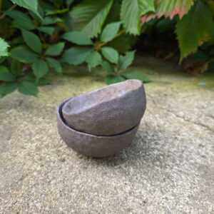 Zestaw 2 małych ręcznie formowanych misek ceramicznych, który może służyć do serwowania przystawek, przekąsek, śniadań lub deserów. Miski należą do serii naczyń o nazwie Rusty. Japońska filozofia wabi sabi zainicjowała serię surowych, nieregularnych naczyń. Kiedy zwiedzałam Kioto, miałam okazję zrozumieć w jaki sposób i dlaczego Japończycy widzą piękno w niedoskonałości i przemijaniu.