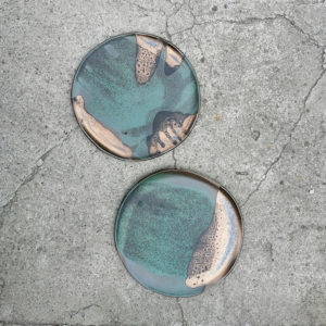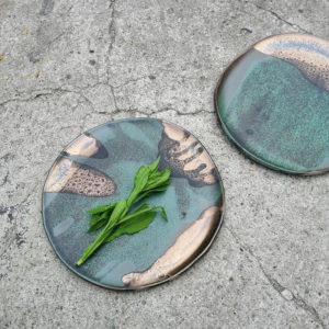 Zestaw dwóch średniej wielkości talerzy ceramicznych, który może służyć do podania dania głównego, serów, warzyw, lub owoców. Będzie trafionym wyborem, jeśli szukasz wyjątkowego prezentu na wesele lub parapetówkę.