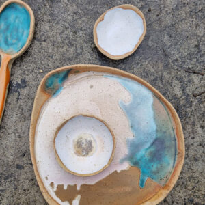 Zestaw należy do serii naczyń o nazwie Aotearoa. Aotearoa to nazwa Nowej Zelandii w języku maoryskim. Seria powstała pod wpływem podróży po tym malowniczym kraju, która miała miejsce w październiku 2019 roku. Nowa Zelandia jest uznawana za najbardziej zróżnicowany pod względem geologicznym i geograficznym kraj na świecie. Nic dziwnego, można tam spotkać aktywne wulkany, głębokie fiordy, pokryte śniegiem góry, lasy sekwojowe, lodowce, gorące żródła, gejzery, baseny błotne, świecące jaskinie i spektakularne plaże ( złote, czarne i białe).