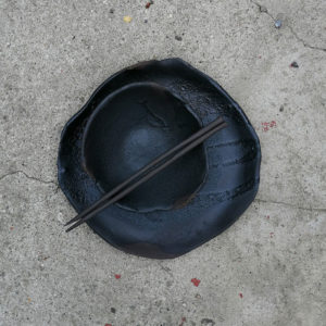 It is part of a larger set of pieces, a series I call Moon. I created this series after my travels to Iceland. The volcanic landscapes and especially the black beach Reynisfjara gave me the inspiration to work on rough, black pieces that evoke images of volcanic rocks and even the surface of the moon. If you want to see the moon, go to Iceland.