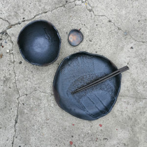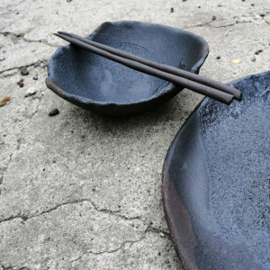 This set can be used to serve Asian food, such as sushi, tempura, rice, kimchi, etc. It can be a good choice when looking for a unique gift for an Asian food lover. The set consists of medium plate, a small bowl, and a pair of chopsticks with a holder.