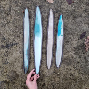 It is part of a larger set of pieces, a series I call Glacier. This series was inspired by my travels through South Iceland of New Zealand. The unique scenery with its rocks, glaciers and glacial lakes was covered in snow and ice. I tried to express the mood of the landscape by giving this series similar black, blue and earthy colours. The pictures reveal Tasman Glacier – which is the largest glacier in NZ.