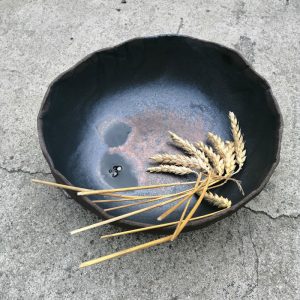 This extra-large ceramic bowl can be used as table decoration or to serve fruit. It is part of a larger set of pieces, a series I call Moon. I created this series after my travels to Iceland. The volcanic landscapes and especially the black beach Reynisfjara gave me the inspiration to work on rough, black pieces that evoke images of volcanic rocks and even the surface of the moon. If you want to see the moon, go to Iceland.