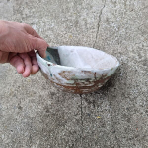 This handbuilt bowl is perfect as a piece of decoration or can be used to serve soup or breakfast porridge – it works well as a bowl for party snacks and spreads.