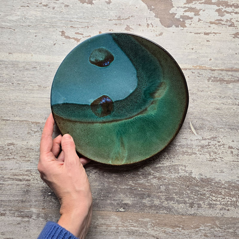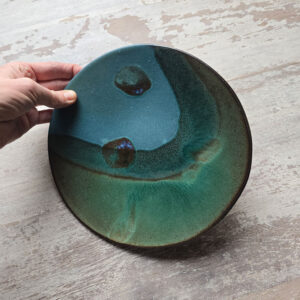 This medium handbuilt platter plate can be used as a table decoration or to serve party meals.
