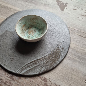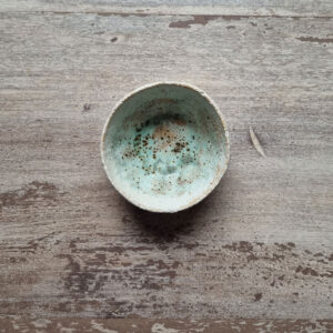 This small stoneware bowl can be used for serving rice, antipasti or party snacks.The bowl is made using pinch method, meaning its shape is unique and one of a kind. It is part of a larger set of pieces, a series I call Wetlands.