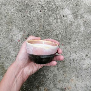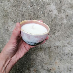 This hand-poured soy candle comes in a small, handmade ceramic bowl. Once the candle has been thoroughly enjoyed, the small bowl can be used for serving hot drinks, like coffee, tea, matcha but you can use it to serve food, like sauces, a handful of berries, or nuts as well. Some people treat it as a tealight holder.
